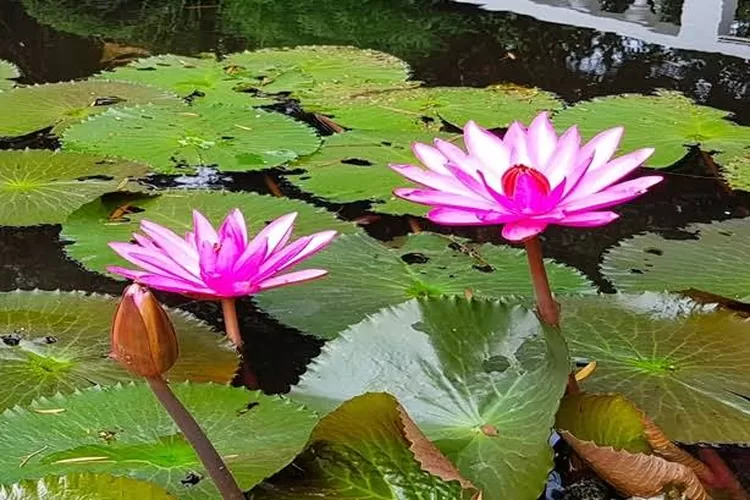 Bunga tumbuhan teratai air memiliki bentuk memanjang dan agak runcing. Bunganya dapat merekah selebar kaki. Tumbuhan ini bisa pilihan hiasan bagi anda yang hobi mendesain rumah.