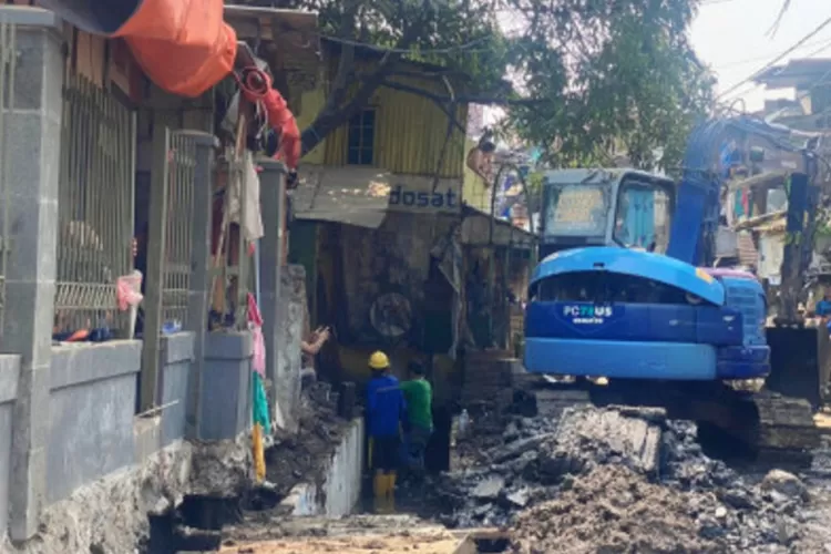 Edisi.co.id - Suku Dinas Sumber Daya Air (SDA) Jakarta Pusat menormalisasi saluran air di Jalan Petamburan II, RW 03, Petamburan, Tanah Abang.
