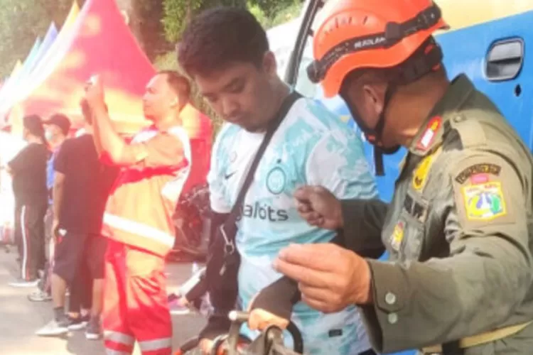 Edisi.co.id - Personel Satpol PP Jakarta Timur, Minggu (24/9), mengedukasi cara penggunaan peralatan keselamatan bencana kepada warga yang menikmati hari libur di kawasan Kanal Banjir Timur (KBT).