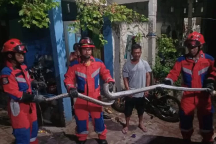 Edisi.co.id - Suku Dinas Penanggulangan Kebakaran dan Penyelamatan (Sudin Gulkarmat) Jakarta Utara dan Kepulauan Seribu mengevakuasi seekor ular sanca di Jalan Lancang Permai, Gang Kuburan, RT 03/03, Pulau Lancang, Kelurahan Pulau Pari, Kepulauan Seribu Selatan.