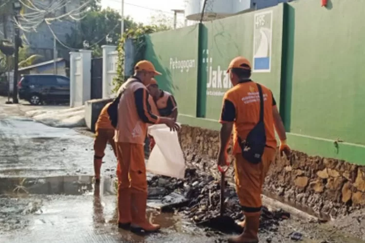 Dalam kegiatan ini, pihaknya dibantu empat personel Suku Dinas Bina Marga Jakarta Selatan untuk memperbaiki jalan lingkungan yang tergenang saat hujan beberapa waktu lalu.