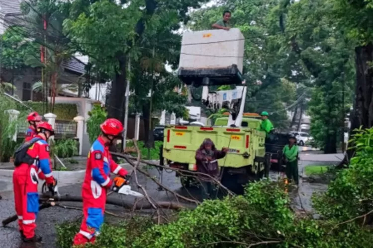 Edisi.co.id - Personel Suku Dinas Penanggulangan Kebakaran dan Penyelamatan (Sudin Gulkarmat) Jakarta Selatan bergerak cepat laksanakan evakuasi pohon tumbang hingga mobil.mewah yang terperosok ke saluran terhadap Sabtu (6/1).