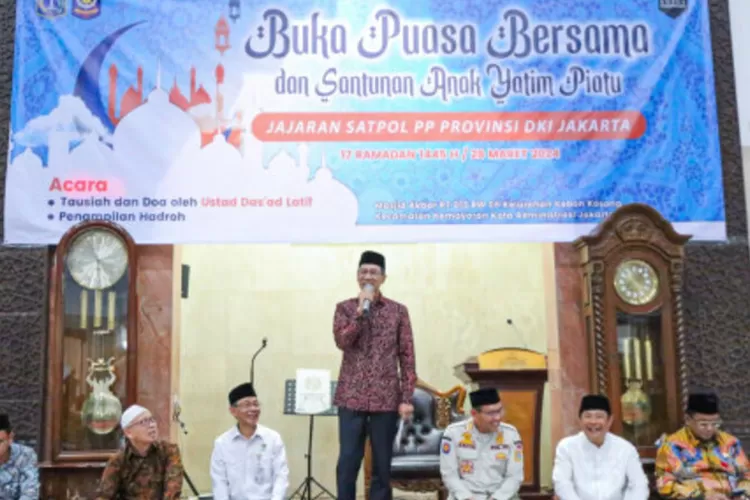 Edisi.co.id - Penjabat (Pj) Gubernur DKI Jakarta, Heru Budi Hartono didampingi Kepala Satuan Polisi Pamong Praja (Satpol PP) Provinsi DKI Jakarta, Arifin menghadiri buka puasa bersama 3.000 personel Satpol PP di Masjid Akbar Kemayoran, Jakarta Pusat, Kamis (28/3).