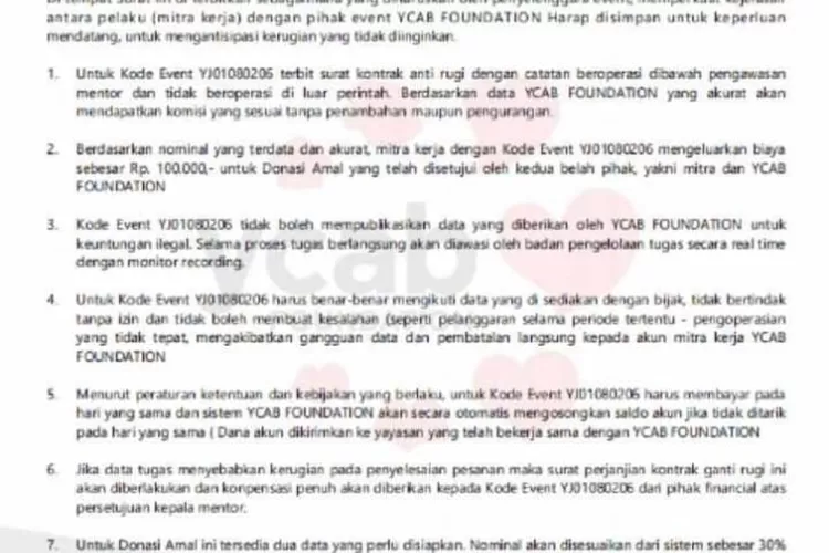 "Sekali lagi ditegaskan kepada seluruh masyarakat untuk waspada pada penipuan dengan modus pemberian cashback dan komisi yang mengatasnamakan Yayasan Pundi Amal Peduli Kasih (YPP) dan YCAB Foundation," ucap dia.