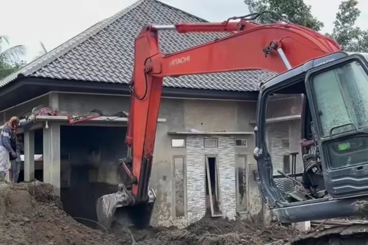 Beredar di media sosial, alat berat turut membantu untuk membersihkan lumpur di area luar rumah.