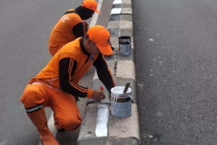 Edisi.co.id - Petugas PPSU 15 dikerahkan untuk mengecat kembali kanstin di sepanjang Jalan Tanjung Duren Barat Raya, RW 12, Kelurahan Tanjung Duren Utara, Kecamatan Grogol Petamburan, Jakarta Barat, Jumat (30/1).