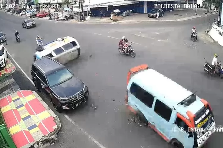 Dari rekaman kamera CCTV yang diterima detikSumbagsel, keluar ke-2 angkot berikut saling salip-menyalip dari arah Pasar Tengah melintas di Jalan Raden Intan, Bandar Lampung, sebelum akan selanjutnya terguling dan menghantam satu unit mobil Fortuner yang terparkir di tepi jalan.