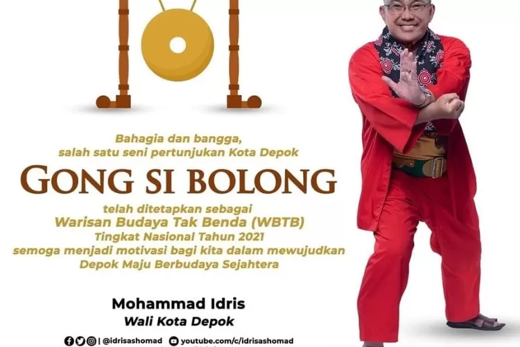 Edisi.co.id - Seni Pertunjukan asal Depok "Gong Si Bolong" ditetapkan sebagai warisan budaya Takbenda (WBTb) dalam Sidang Penetapan Warisan Budaya Takbenda Indonesia 2021.
