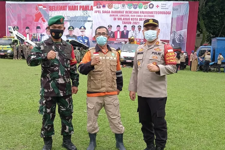 Edisi.co.id - Pemerintah Kota Depok mengadakan Apel Siaga Darurat Bencana Hidrometeorologi di Wilayah Kota Depok Tahun 2021 di Lapangan Balai Kota Depok, Senin (15/11/21). Wali Kota Depok, Mohammad Idris, bersama Dandim 0508/Depok Kolonel Inf. Agus Isrok Mikroj, dan Wakapolres Metro Depok AKBP Hari Setyo Budi melakukan inspeksi dan pengecekan perlengkapan anggota tim Siaga Darurat Bencana Hidrometeorologi yang terdiri dari gabungan TNI-Polri, Anggota Dinas Pemadam Kebakaran dan Penyelamatan, Palang Merah Indonesia, Pramuka, dan komunitas relawan Kota Depok.