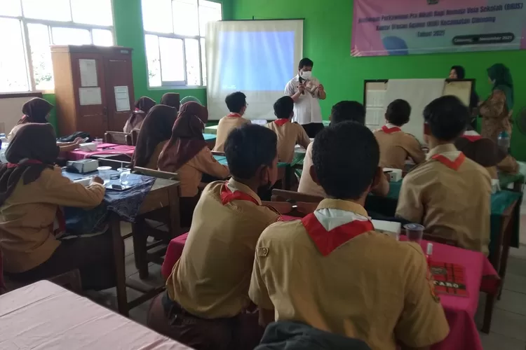 Edisi.co.id - Dalam rangka sosialisasi kehidupan berkeluarga bagi remaja, Badan Kependudukan dan Keluarga Berencana Nasional (BKKBN) bekerjasama dengan Kantor Urusan Agama (KUA) Cibinong melaksanakan bimbingan perkawinan bagi remaja. Kegiatan berlangsung Rabu, 17 November 2021 di Aula SDN Cirimekar Cibinong Kabupaten Bogor.