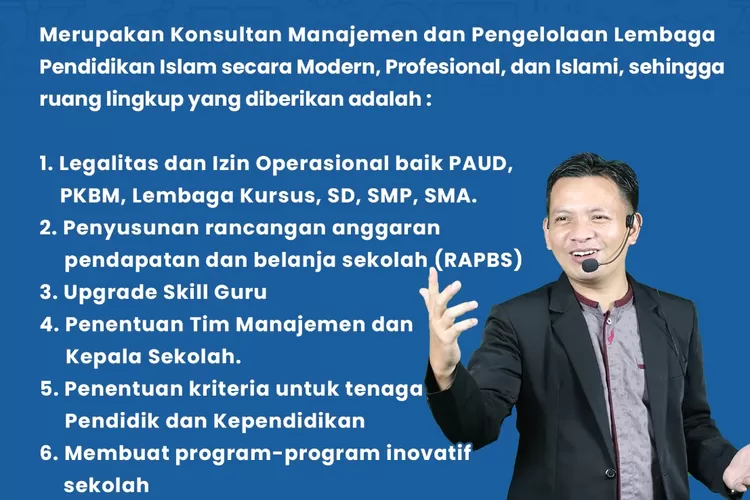 beliau juga memberikan jasa branding bagi lembaga pendidikan islam dan company profil lembaga.