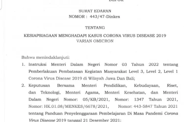 Surat Edaran Nomor 443/47-Dinkes memaparkan sejumlah arahan bagi masyarakat.