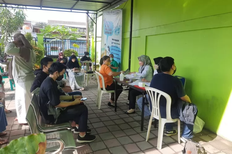 Dari pagi, warga sudah antre untuk vaksin jenis Sinovac. Pelayanan vaksin ditargetkan 250 kuota ini.
