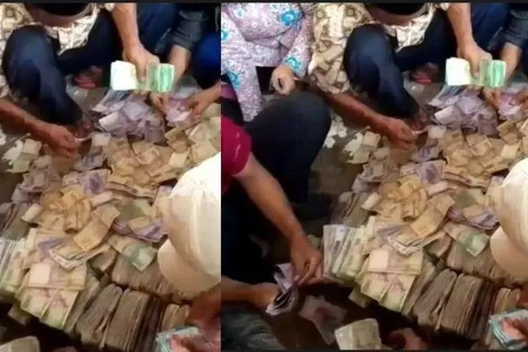 Dalam unggahan viral akun media sosial @Infodepok24, tampak dalam video warga tengah mengumpulkan uang di rumah.