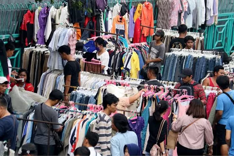 Edisi.co.id - Pusat penjualan pakaian bekas atau kini lebih keren disebut sebagai thrifting di Pasar Senen, Jakarta Pusat dipadati warga pada masa libur Natal 2022 dan Tahun Baru 2023.