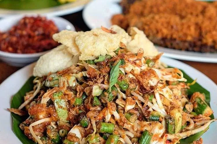 Makanan sehat ini terdiri dari sayur kol, kacang panjang, toge, mentimun, hingga daun kemangi.