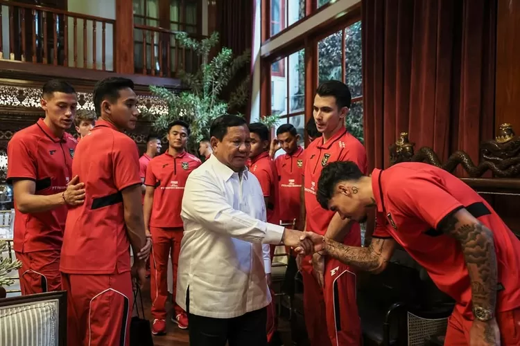 Edisi.co.id - Presiden Prabowo menerima kedatangan para pemain, pelatih dan ofisial Timnas Sepak Bola Indonesia di rumah pribadinya.